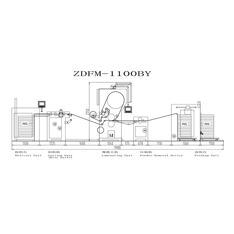 Intelligentne servopulbri eemaldamise lamineerimismasin koosneb peamiselt paberi etteandesüsteemist, liimimis- ja kuivatussüsteemist, lamineerimissüsteemist, ketasnoast ja lõikesüsteemist, automaatsest paberi vastuvõtu- ja virnastamissüsteemist, PLC puuteekraanist ja ülitäpsest servomootori elektrilisest juhtimissüsteemist.