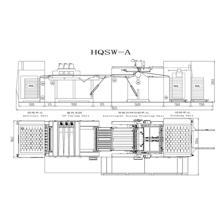Intelligentne töö: sellel intelligentsel UV-kõvastuval siiditrükimasinal on täielikult servo-intelligentne juhtimissüsteem. Ühe nupuvajutusega käivitamisega viib see automaatselt lõpule rea toiminguid, sealhulgas paberi transportimist, siiditrükkimist, kuivatamist, jahutamist ja paberi kogumist, pakkudes täpsust, suurt tõhusust ja kasutuslihtsust.