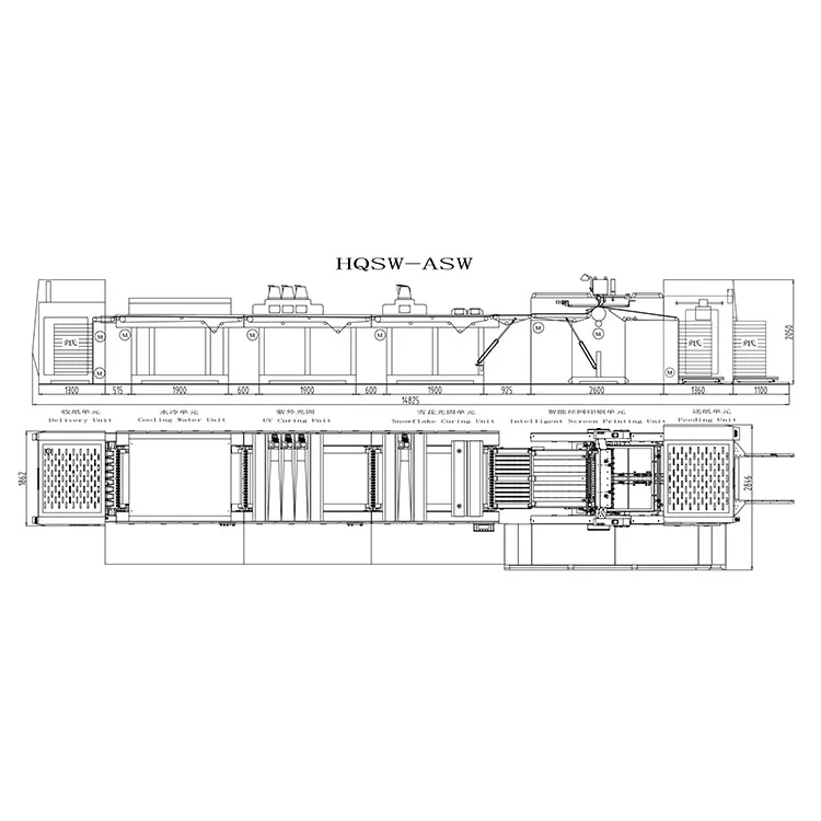 Intelligentne töö: see intelligentne UV-lumehelbega kõvenev jahutusveega siiditrükimasin kasutab täielikult servo-intelligentset juhtimissüsteemi, ühe nupuvajutusega käivitust ja viib automaatselt lõpule rea toiminguid, sealhulgas paberi transportimist, siiditrükkimist, kuivatamist, jahutamist ja paberi kogumist, kasutades täpselt, tõhusalt ja hõlpsalt.